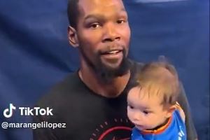 有爱一幕!杜兰特赛前抱起穿着雷霆35号球衣的小婴儿