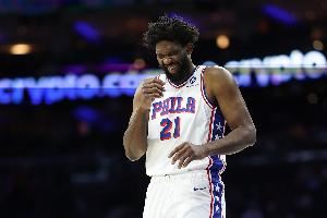 上半场,76人球星恩比德表现不佳,打了10分钟6投仅1中,三分2中0、罚球2中2拿到4分3篮板,正负值-1。