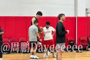 周鹏表示,开拓者开放了今天在拉斯维加斯训练的最后时间段,杨瀚森继续在夏联主教练伯瑞尔和助教斯普利特的协助下进行加练,定点三分依然是主要加练项目。