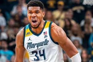 马奎特大学男篮官方晒出了字母哥身穿本队球衣的P图,写道:“随时欢迎!”