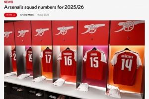 阿森纳球员新赛季号码:约克雷斯14号 祖比门迪36号 马杜埃凯20号
