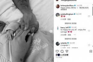 吉布斯-怀特社媒配文写道:“海耶斯-吉布斯-怀特,2025年8月8日出生。”