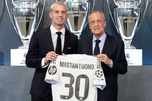 周四刚满18周岁的马斯坦托诺,在成年当天正式以皇马新30号亮相,这符合皇马一线队注册年龄要求。尽管号码不在1-25号的一线队常规序列,但他已被纳入阿隆索的战术体系。