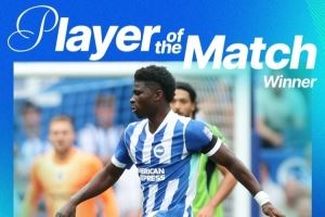 体育资讯8月17日讯 本赛季英超首轮,布莱顿1-1富勒姆。赛后,布莱顿中场巴莱巴当选队内最佳球员。
