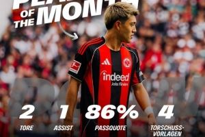 体育资讯9月11日讯 法兰克福昨日官方宣布,效力于该队的日本国脚堂安律当选球队8月最佳球员。