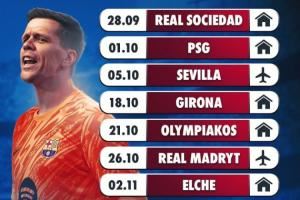 这也意味着在未来的近2个月内,巴萨的另一位门将——35岁的什琴斯尼将再次为巴萨首发出场。