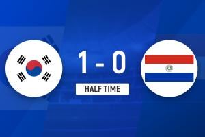 半场战罢,韩国暂1-0巴拉圭。