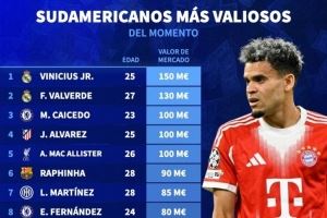 南美球员德转身价排名: