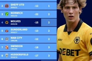 体育资讯11月3日讯 转会市场盘点了英超历史前10轮过后最差战绩,其中本赛季狼队第四,其他前8球队最终均降级。具体如下(积分,净胜球):