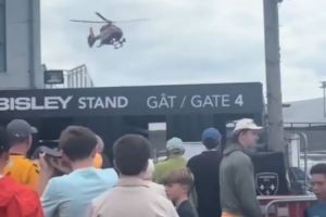后续更新显示:“医疗救援仍在进行,目前计划在两架医疗直升机离场后,留出充足热身时间再开赛。”