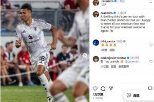 体育资讯8月4日讯 不久前,曼联中场卡塞米罗更新了社交媒体,感谢美国球迷。