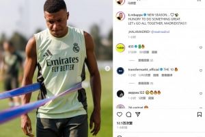 姆巴佩社媒晒出训练照片,配文:“新赛季…渴望成就大事,让我们一起努力,皇马人!HALA MADRID!”