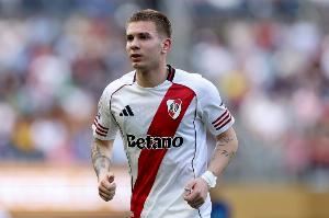 “完全正确。这个位置最能发挥他的盘带、传球、视野和左脚优势。德米凯利斯让他完成河床一线队首秀,而加拉尔多在他最后阶段的培养中至关重要。他已经是一个成品。”